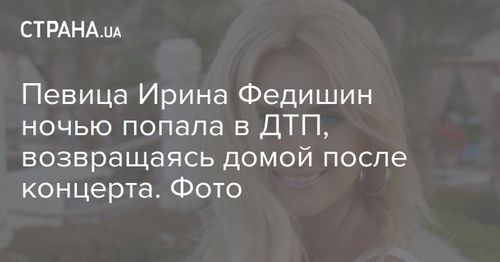 Украинская певица Ирина Федишин в ночь на 16 декабря попала в ДТП, возвращаясь домой с концерта в Шепетовке. Об этом сообщает ТСН, ссылаясь на информацию, полученную от самой певицы.