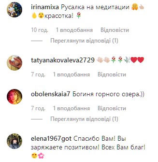 "Какая шикарная фигура", "Просто богиня", "Снегурочка на отдыхе", "Русская красавица - наша гордость!", "Чудо как хороша", "Вы прекрасно выглядите, Екатерина", "Аж дух перехватило от такой красоты", "Такое ощущение, что вы становитесь еще моложе вместо того, чтобы стареть", - пишут они.