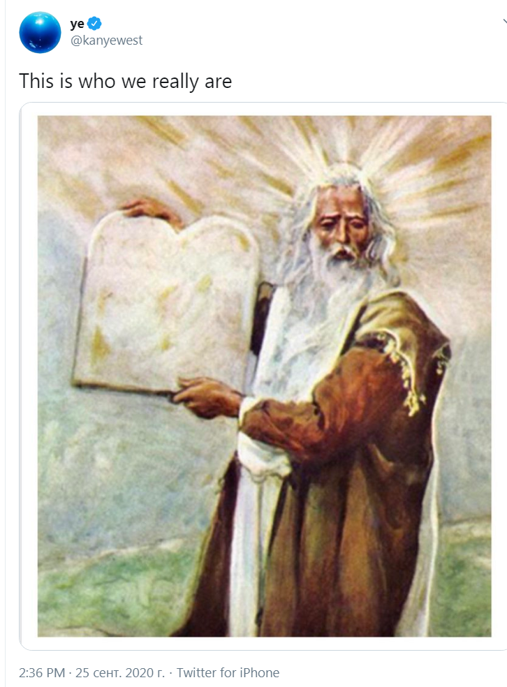 Первым рэпер разместил изображение пророка Моисея со скрижалями, добавив комментарий: "Вот кто мы есть на самом деле".