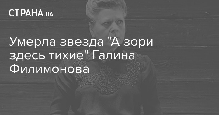 Умерла звезда "А зори здесь тихие" Галина Филимонова