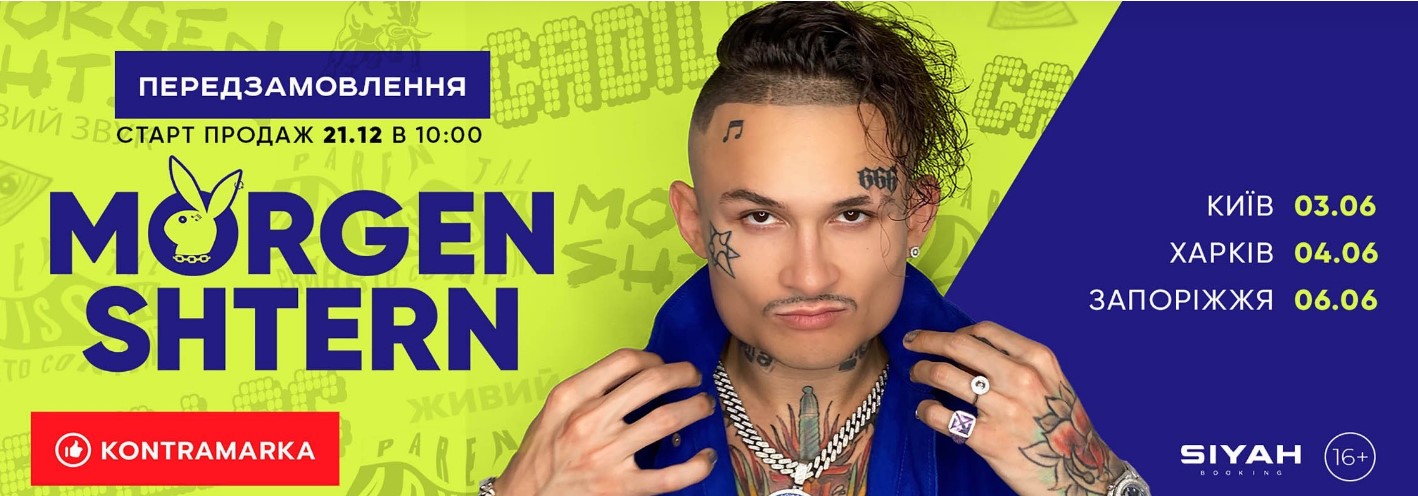 Так, первый запланированный концерт Моргенштерна состоится 3 июня в Киеве, 4 июня – в Харькове, а 6 июня – в Запорожье.