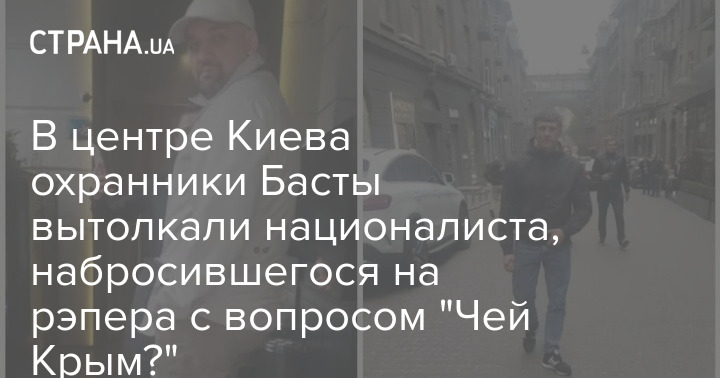 Охранники российского рэпера Басты (Василия Вакуленко), который приехал в Киев после окончания срока запрета на въезд в Украину, вытолкали из ресторана мужчину, который настойчиво задавал артисту вопросы о том, "чей Крым" и почему он выступал на аннексированном полуострове.
