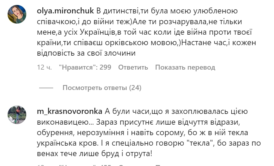 В комментариях читатели страницы Ани Лорак разделились: одни возмущаются, что песня на русском языке, а сама певица живет в России.