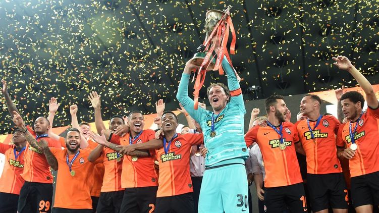 После этого капитан "горняков", голкипер сборной Украины Андрей Пятов поднял над головой кубок чемпионов страны.
