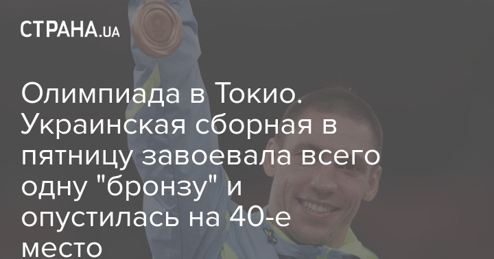 По итогам пятницы, 6 августа, Украина получила всего 1 бронзовую медаль на Олимпиаде в Токио, ее команде принес каратист Станислав Горуна. Наша сборная опустилась с 36-го на 40-е место в медальном зачете.