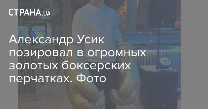 Александр Усик позировал в огромных золотых боксерских перчатках. Фото