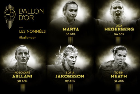 На эту награду претендуют 20 футболисток из США, Бразилии. Новой Зеландии, Швеции, Нидерландов, Франции, Германии, Дании, Англии. Среди них действующая обладательница "Золотого мяча" норвежка Ада Хегерберг.