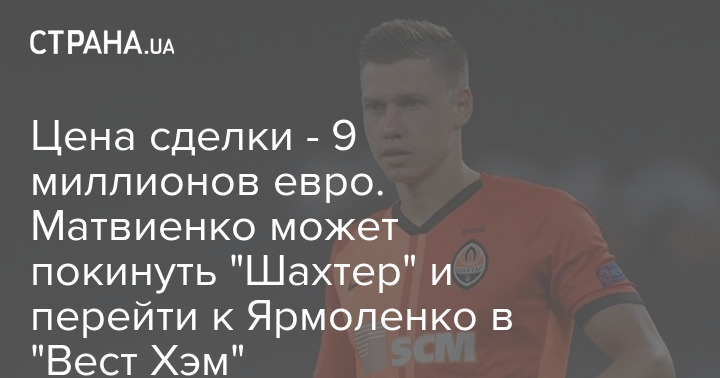 Цена сделки - 9 миллионов евро. Матвиенко может покинуть "Шахтер" и перейти к Ярмоленко в "Вест Хэм"