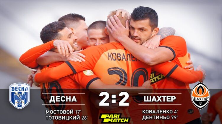 Донецкий "Шахтер" едва не проиграл в выездном матче пятого тура Favbet Лиги с Десной — матч завершился вничью 2:2.