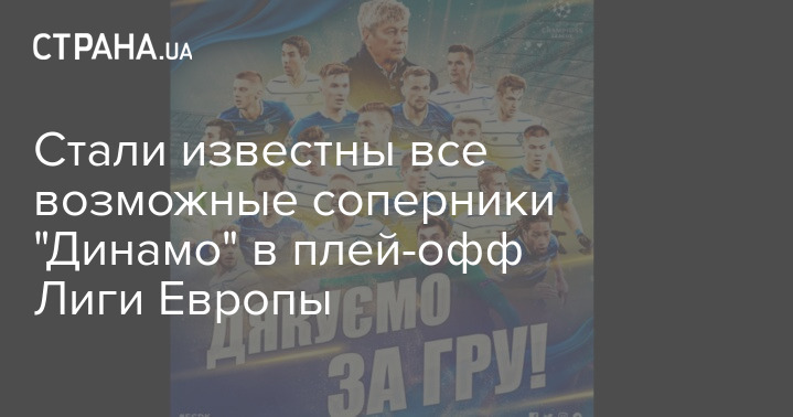 Стали известны все возможные соперники "Динамо" в плей-офф Лиги Европы