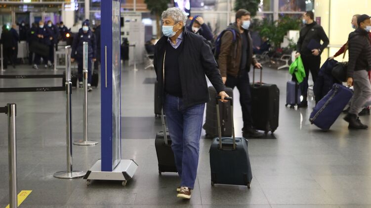 Мирча Луческу соблюдал меры личной безопасности в аэропорту, маску надел правильно, фото: facebook.com/fcdynamoua