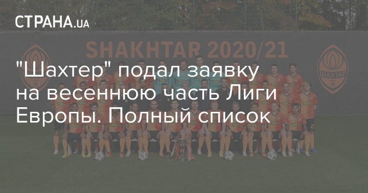 "Шахтер" подал заявку на весеннюю часть Лиги Европы. Полный список