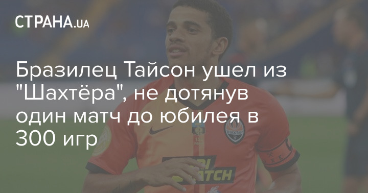 Бразилец Тайсон ушел из "Шахтёра", не дотянув один матч до юбилея в 300 игр