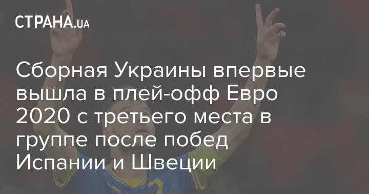 Сборная Украины впервые вышла в плей-офф Евро 2020 с третьего места в группе после побед Испании и Швеции