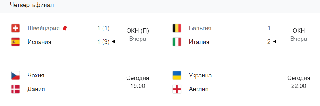 То есть, в случае победы украинцы в полуфинале встретятся с датчанами или чехами.