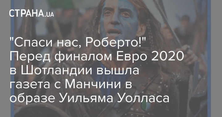 Выступающая за независимость Шотландии местная газета The National в канун финала Евро-2020, где сыграют сборные Италии и Англии, разместила на обложке фото тренера сборной гостей Роберто Манчини в образе Уильяма Уоллеса - борца за независимость Шотландии, которого в 1995 году сыграл Мел Гибсон в фильме "Храброе сердце".