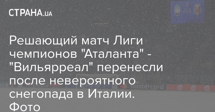 Решающий матч группового турнира Лиги чемпионов, в котором итальянская "Аталанта" принимала испанский "Вильярреал", перенесли с вечера среды на четверг после невероятного снегопада в Бергамо на севере Италии. Начало встречи 9 декабря назначено на 20.00 по Киеву.