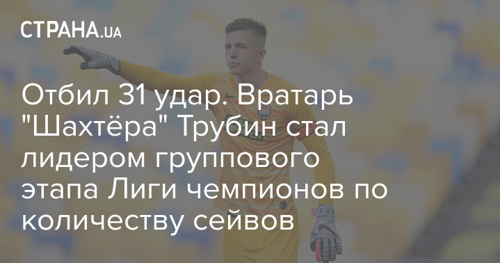 Голкипер донецкого "Шахтера" Анатолий Трубин отразил 31 удар в шести матчах группового турнира Лиги чемпионов и лидирует по этому показателю среди вратарей в сезоне-2022/23.