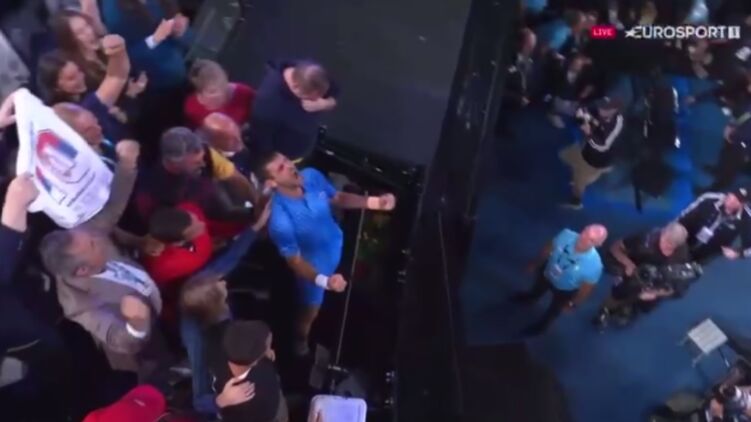 На видео можно заметить эмоции сербского теннисиста и моменты празднования победы с его командой и семьёй.