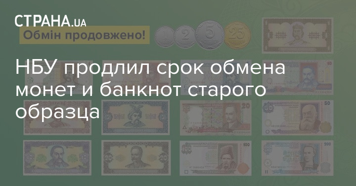Національний банк України продовжує термін обміну монет дрібних номіналів та банкнот гривні старого зразка, введених в обіг до 2003 року, які вилучаються з обігу та перестали бути засобом платежу.