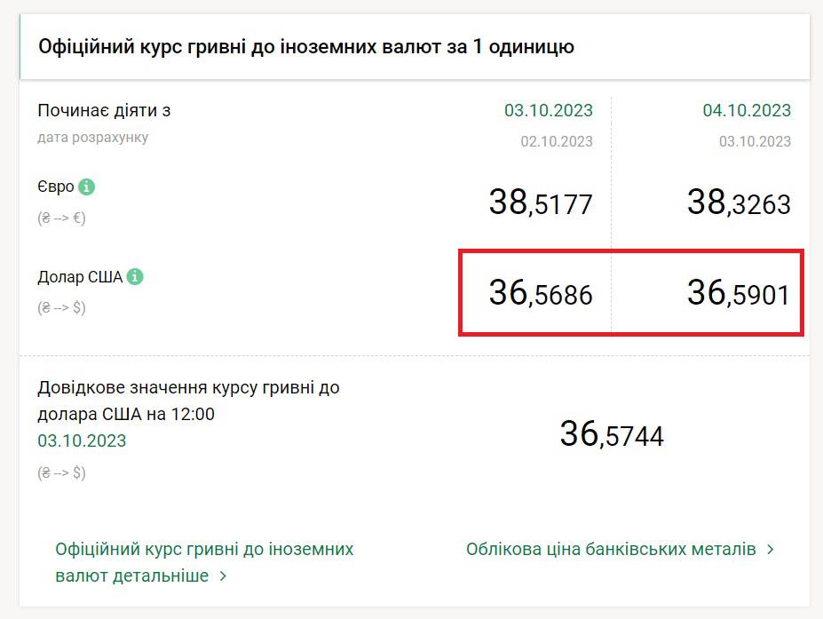Нагадаємо, що 24 лютого 2022 року Нацбанк зафіксував свій офіційний курс долара США на рівні 29,25 грн/$, а 21 липня того ж року підняв його до 36,57 грн/$(цей показник округлявся до 36,6 грн/$).