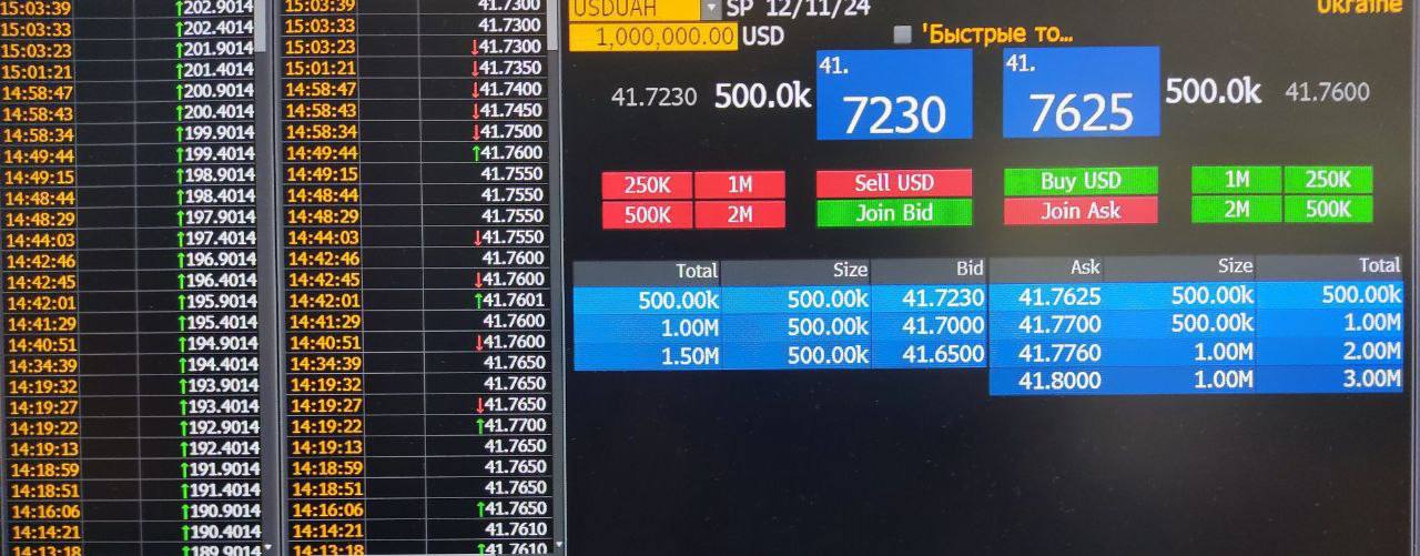 "Ми не спостерігаємо різкого зростання попиту на американську валюту, є стандартний обсяг, не аномальний. Але Нацбанк, який зараз забезпечує міжбанк доларом на 60-80% (залежно від дня), вирішив піднімати цінник, і ринок це підхопив. Зчитуємо сигнал на девальвацію. Усі пам'ятають, що офіційний прогноз, закладений у держбюджеті на кінець 2024 року - 42,1 грн/$. рівнем і йдемо, до кінця грудня три тижні", - зазначив "Страні" директор казначейства системного банку.