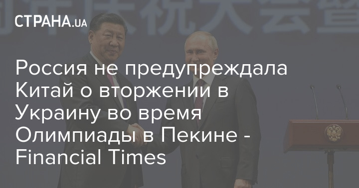 Росія не попереджала Китай про вторгнення в Україну під час Олімпіади в Пекіні - Financial Times
