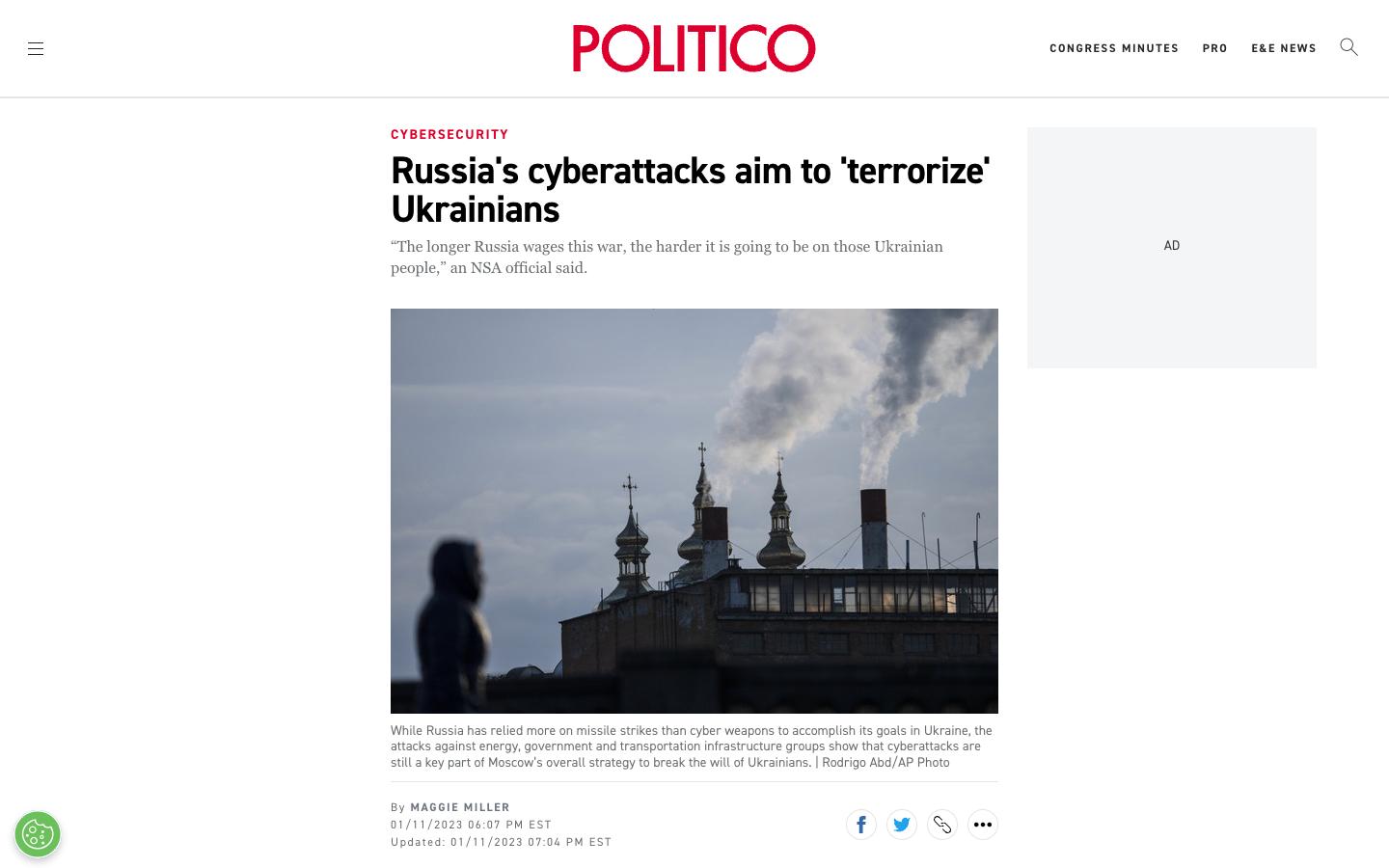 "Багато з цих атак було націлено на громадянське населення, а не на військові цілі. Ми думаємо, що деякі з цих спроб, особливо на владу, робляться для того, щоб вселити страх у кожного українця і просто посилити психологічне навантаження", - сказав Джон Халтквіст, віце-президент з аналізу загроз у компанії з кібербезпеки Mandiant, яка допомагала підтримувати кіберзахист України.