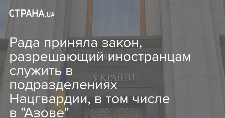 Верховна Рада ухвалила закон, який дозволяє іноземцям служити у підрозділах Нацгвардії. Зокрема – у полку "Азов".