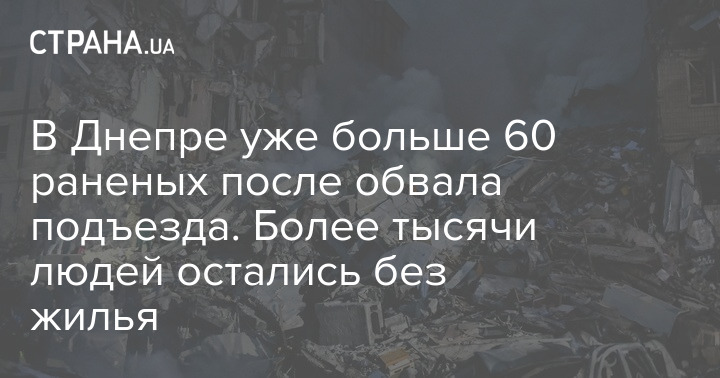 У Дніпрі вже 60 поранених після обвалу під'їзду. Більш ніж тисяча людей залишилися без житла