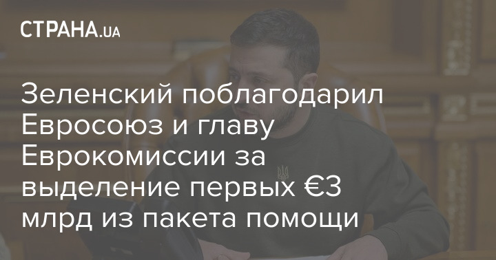 Президент України Володимир Зеленський відреагував на отримання від ЄС та Єврокомісії трьох мільярдів євро із пакету макрофінансової допомоги.
