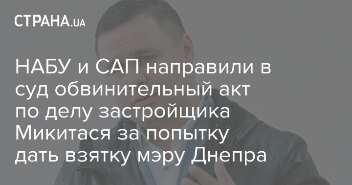 НАБУ та САП направили до суду обвинувальний акт щодо екс-нардепа та екс-президента корпорації "Укрбуд" Максима Микитася, який підозрюється у спробі надання хабара меру Дніпра Борису Філатову.