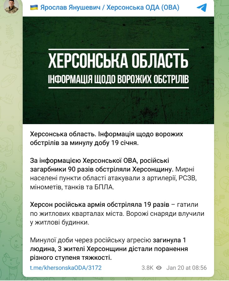 Війна в Україні триває вже 331 день. Ми слідкуємо за новинами 20 січня у своєму онлайні.