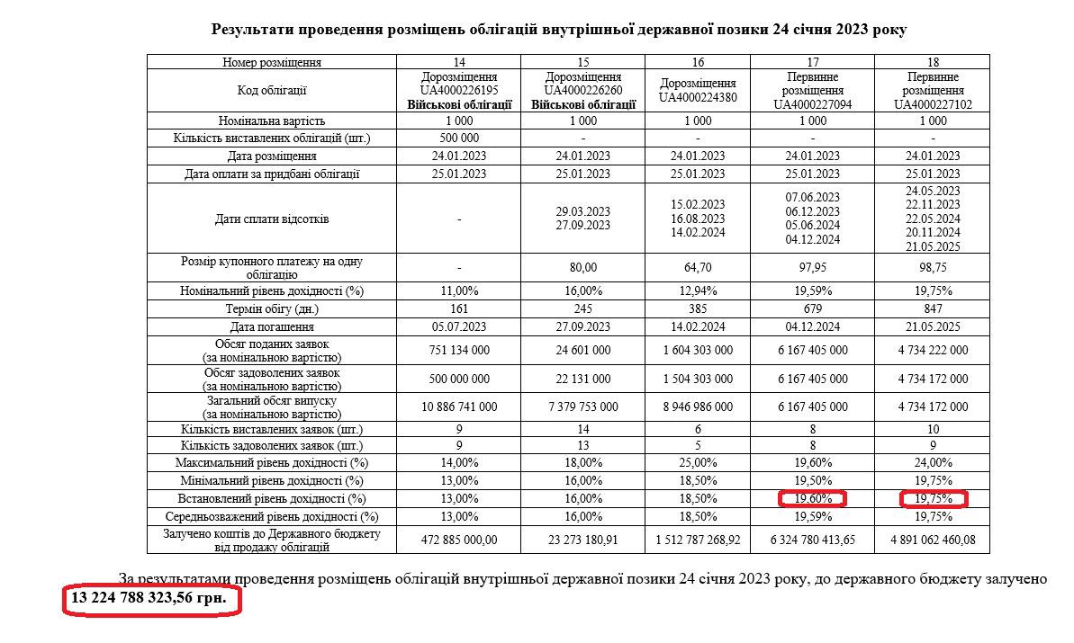 Мінфін вперше у 2023 році підняв ставки по ОВДП, що дозволило позичити понад 13 млрд грн