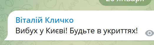 10:08 Мер Віталій Кличко підтвердив вибух та закликав залишатися у укриттях.