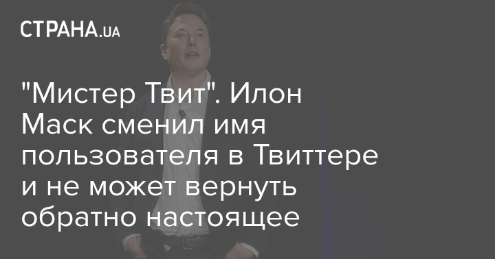 "Містер Твіт". Ілон Маск змінив ім'я користувача у Твіттері і не може повернути назад справжнє