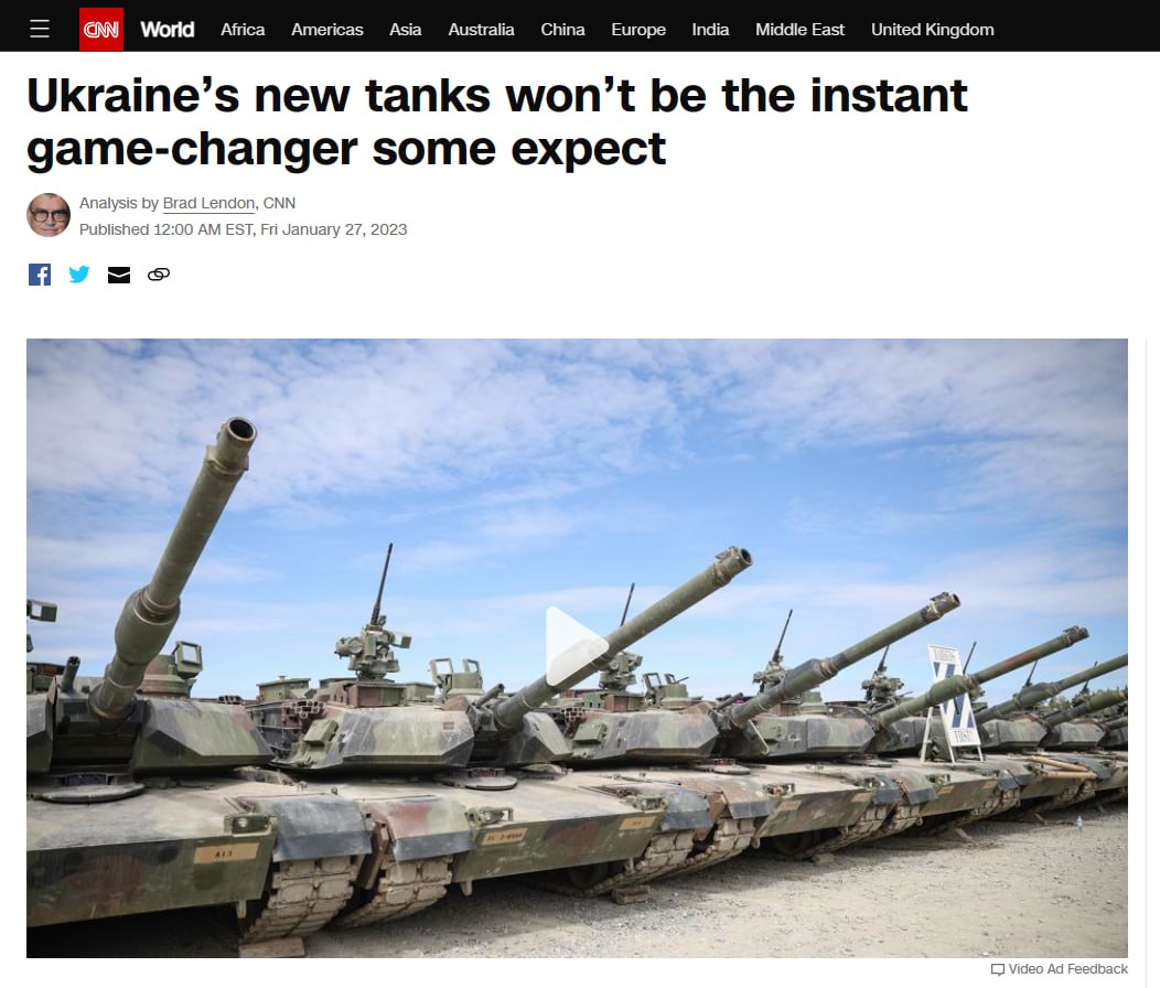 08.27 Ще одне велике західне медіа - канал CNN - пише, що натовські танки не вплинуть негайно на військову ситуацію в Україні.