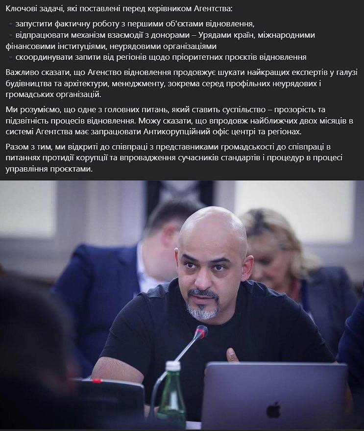 Як завдання нової агенції Кубраков назвав підготовка "стратегічного плану повоєнного відновлення".