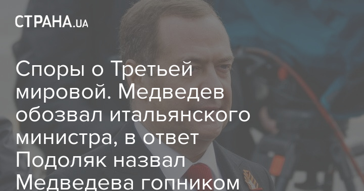 Суперечки про Третю світову. Медведєв обізвав італійського міністра, у відповідь Подоляк назвав Медведєва гопником