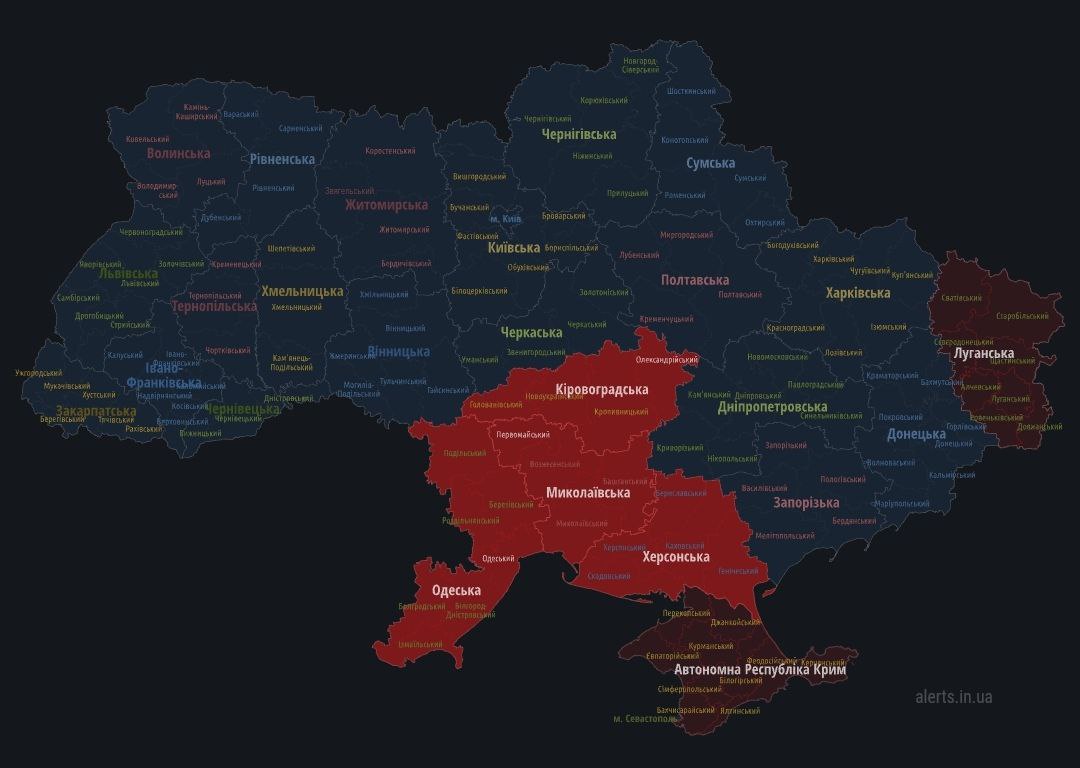 У Миколаївській, Херсонській та Дніпропетровській областях повітряна тривога.