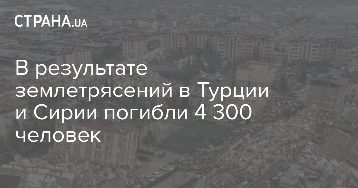Загальна кількість загиблих у землетрусах на територіях Туреччини та Сирії складає близько 4300 осіб.