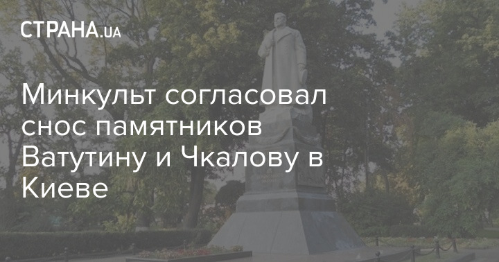 Міністерство культури погодило знесення пам'ятників радянському воєначальнику Миколі Ватутіну та радянському льотчику Валерію Чкалову в Києві.