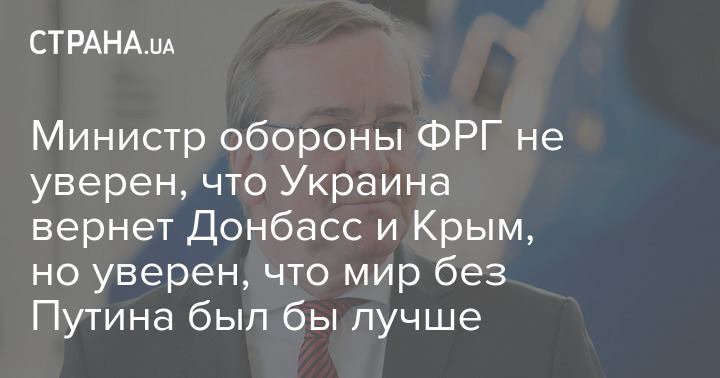 Міністр оборони Німеччини заявив, що Україна навряд чи поверне Донбас і Крим і що світ без Путіна був би кращим