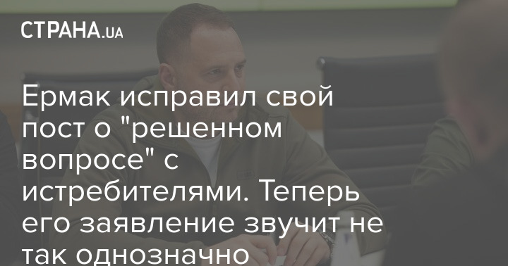 Єрмак виправив свій допис про "вирішене питання" з винищувачами. Тепер його заява звучить не так однозначно