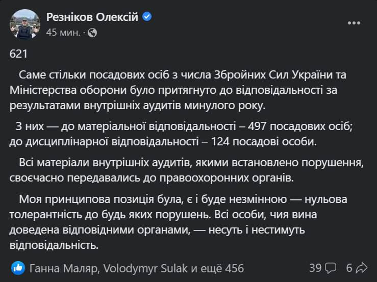 Під постом Резнікова з'явилося багато гнівних коментарів: