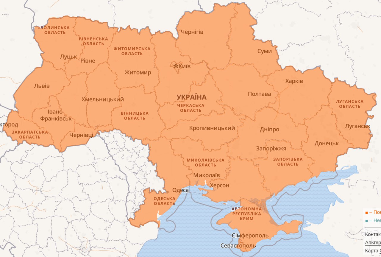 08.35 Тривога вже по всій Україні.