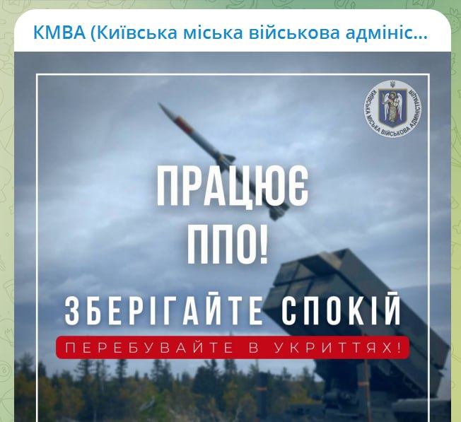 10.14 У Києві працює ППО, повідомляє військова адміністрація.