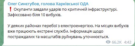 10.15 Пишуть про прильоти Харковом.