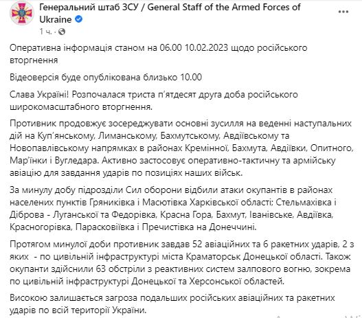 У п'ятницю, 10 лютого, в Україні триває вже 352-й день війни з РФ.