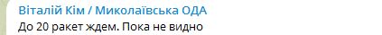 10:30 Губернатор Миколаївської області Кім пише про те, що буде третя хвиля ракетних пусків по Україні.